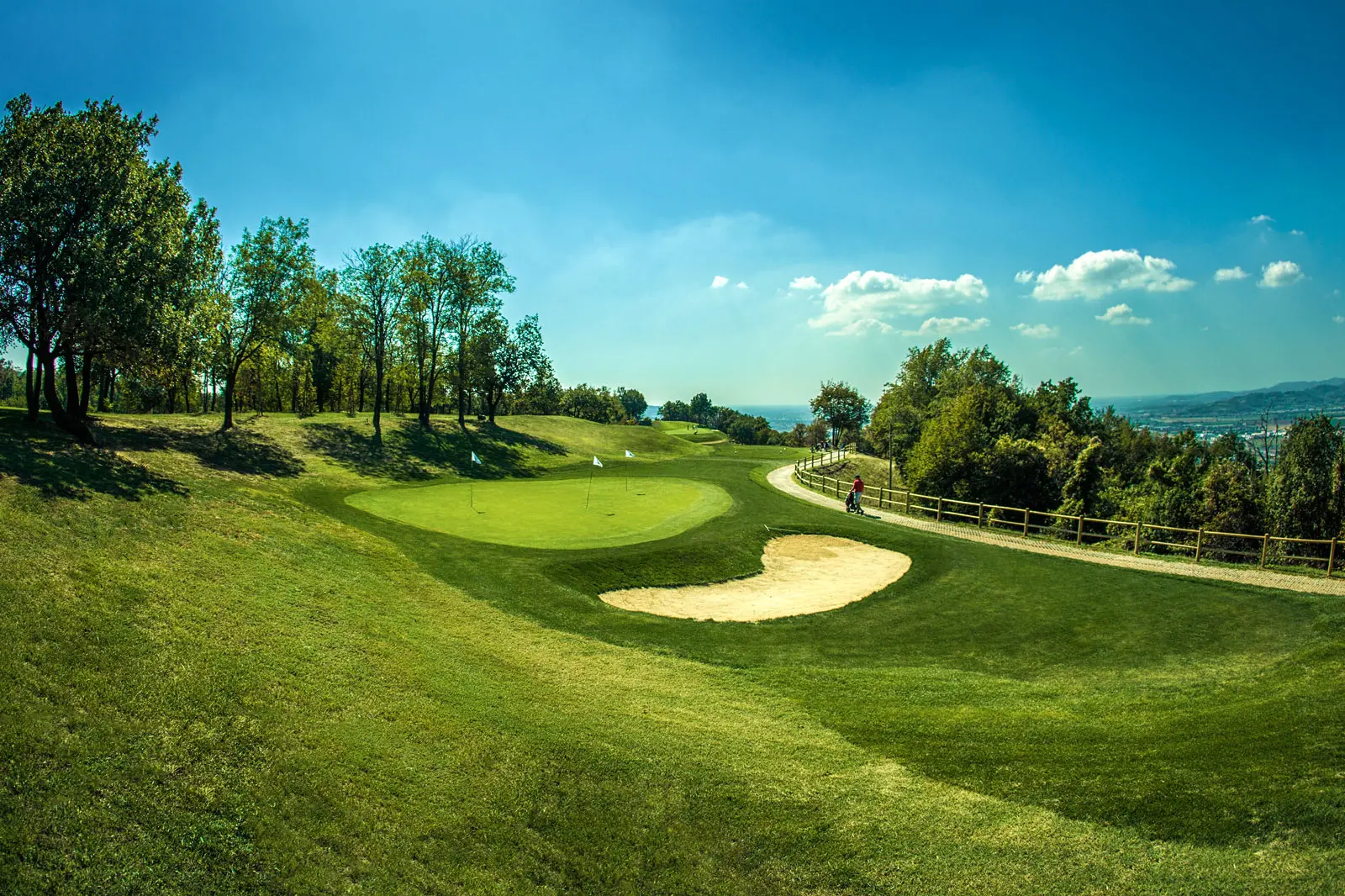 Der Golfplatz Colli Berici – Golfen in traumhafter Landschaft. Der Golf Club Colli Berici ist besonders günstig gelegen, einerseits aufgrund der landschaftlich reizvollen Umgebung und andererseits aufgrund der Nähe zur Autobahnabfahrt Montecchio Maggiore, unweit der Altstadt Vicenzas. Der 18-Loch-Parcours erstreckt sich auf einer durchschnittlichen Höhe von etwa 300 m über dem Meeresspiegel und ist vom Hügelland der Gemeinden Brendola und Altavilla umgeben. Die ersten neun, terrassenförmig angelegten, Löcher beherrschen die Ebene rund um Vicenza und gewähren einen zauberhaften Ausblick auf die Monti Lessini und die Kleinen Dolomiten.